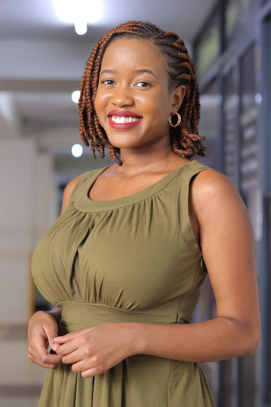 Khaki Green Waist Detailed Dress