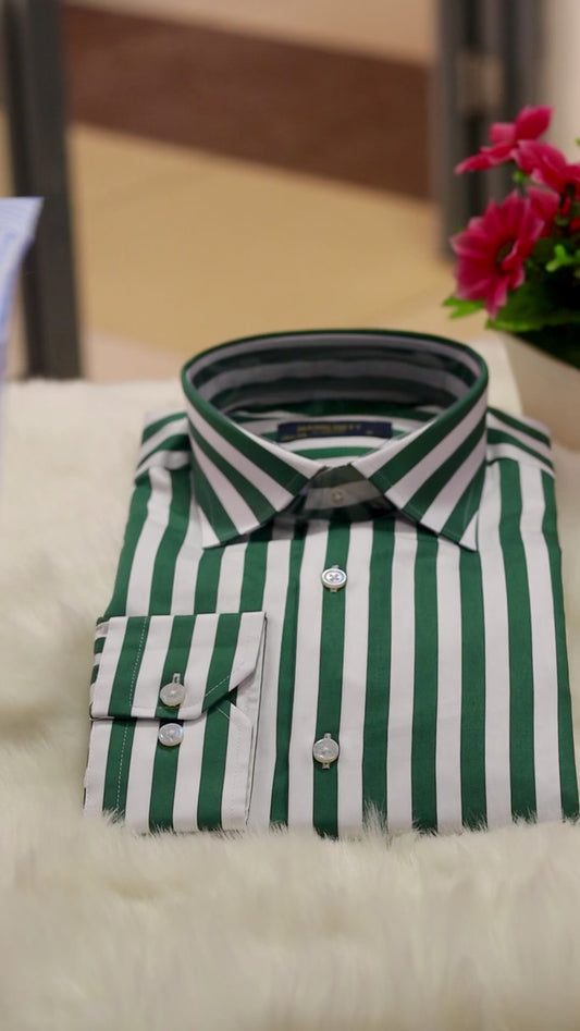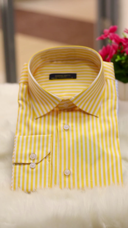 Slim Fit White & Yellow Bengal Stripe Men Shirt