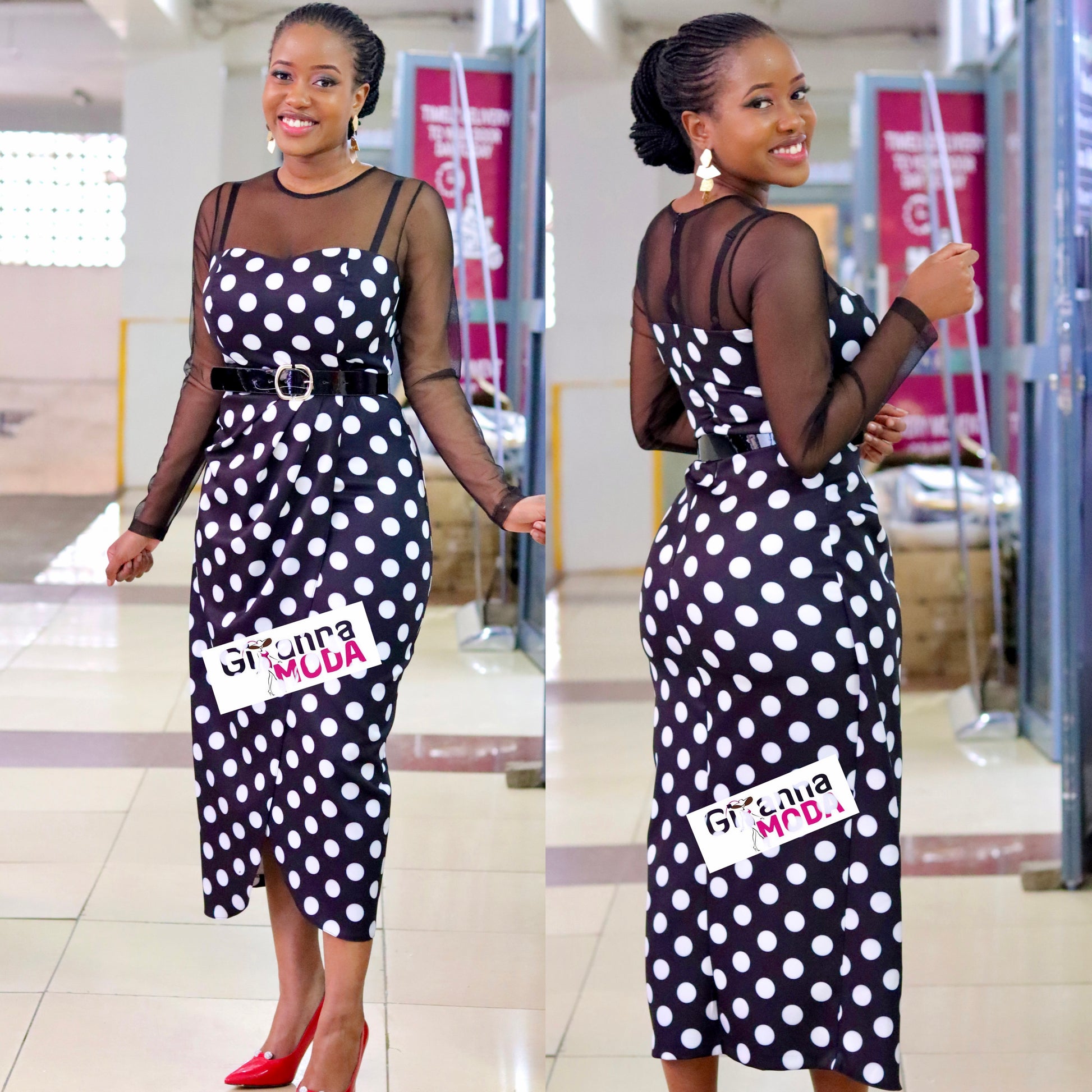 Black Polka Mesh Sleeved Dress