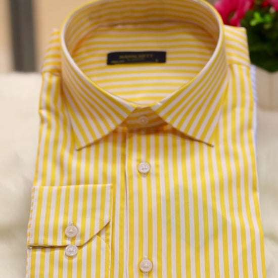 Slim Fit White & Yellow Bengal Stripe Men Shirt