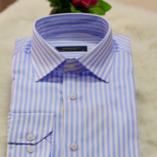 Slim Fit White & Blue Bengal Stripe Men Shirt
