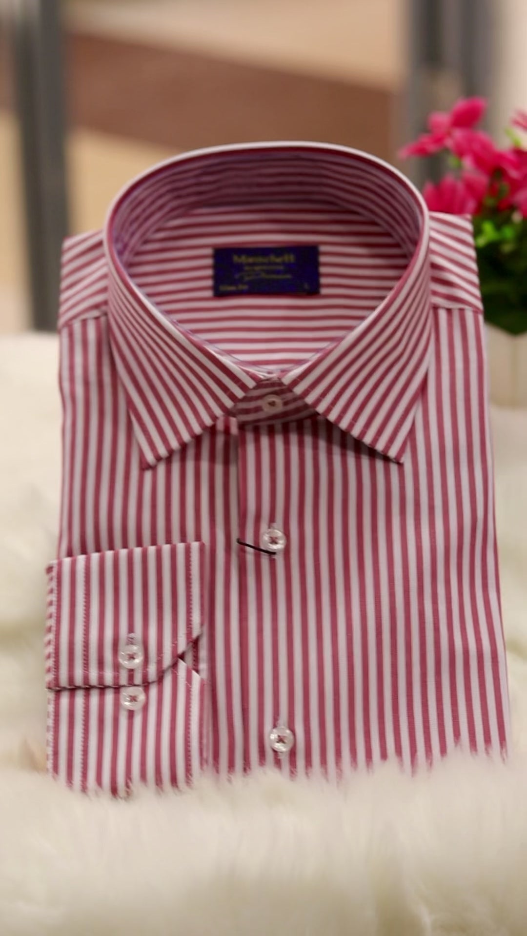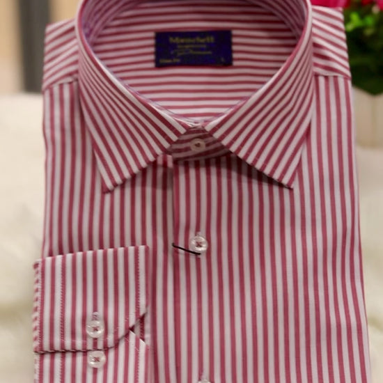 Ace smart-dressing with this Candy stripe shirt crafted from the finest cotton. Features Mitered Cuffs for a clean and sharp appearance. With its bold striped design, it effortlessly complements both business and business casual ensembles, making it a versatile wardrobe staple.